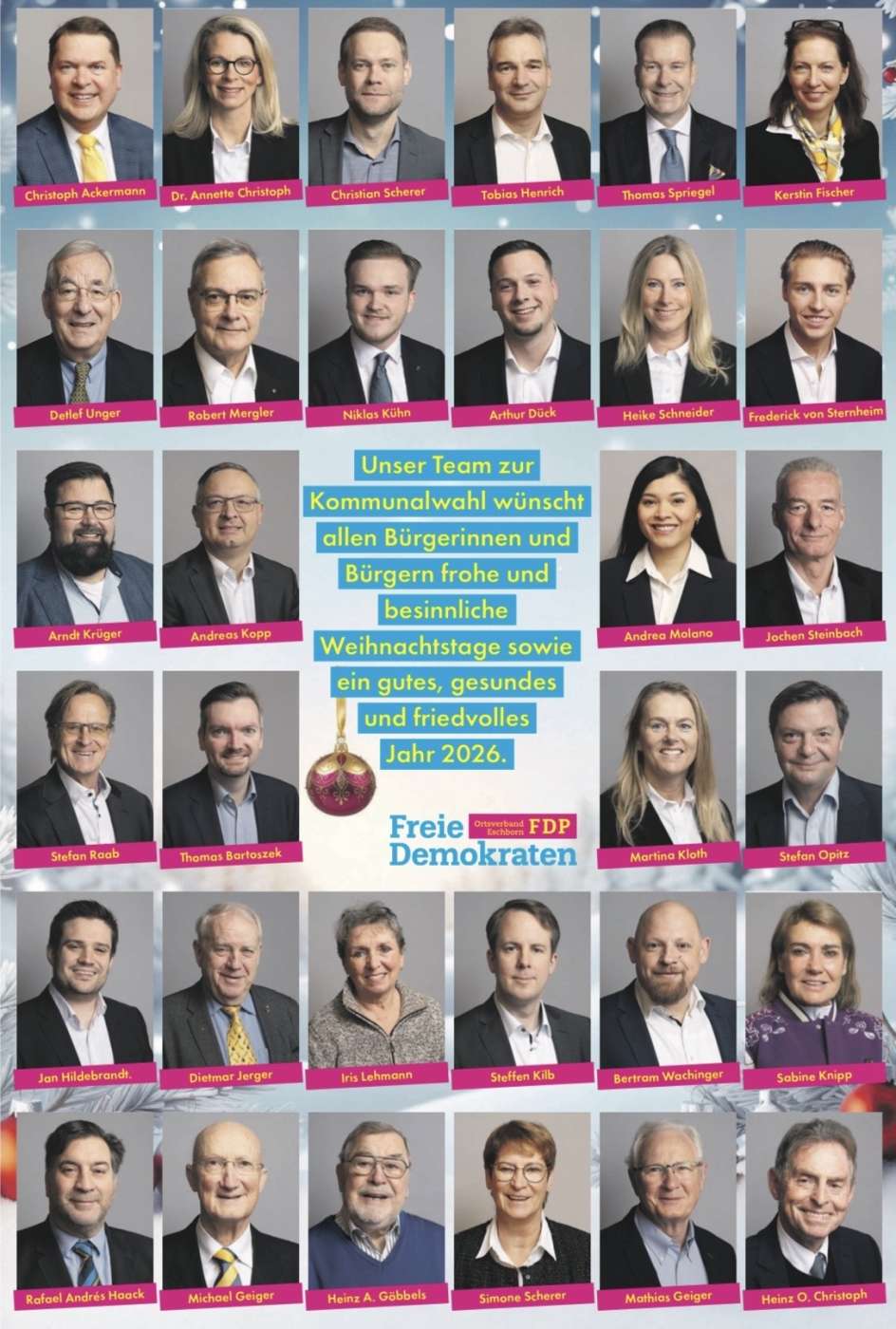 Wir wünschen allen Eschbornerinnen und Eschbornern eine besinnliche Weihnachtszeit, erholsame Feiertage und ein gesundes, erfolgreiches Jahr 2026.